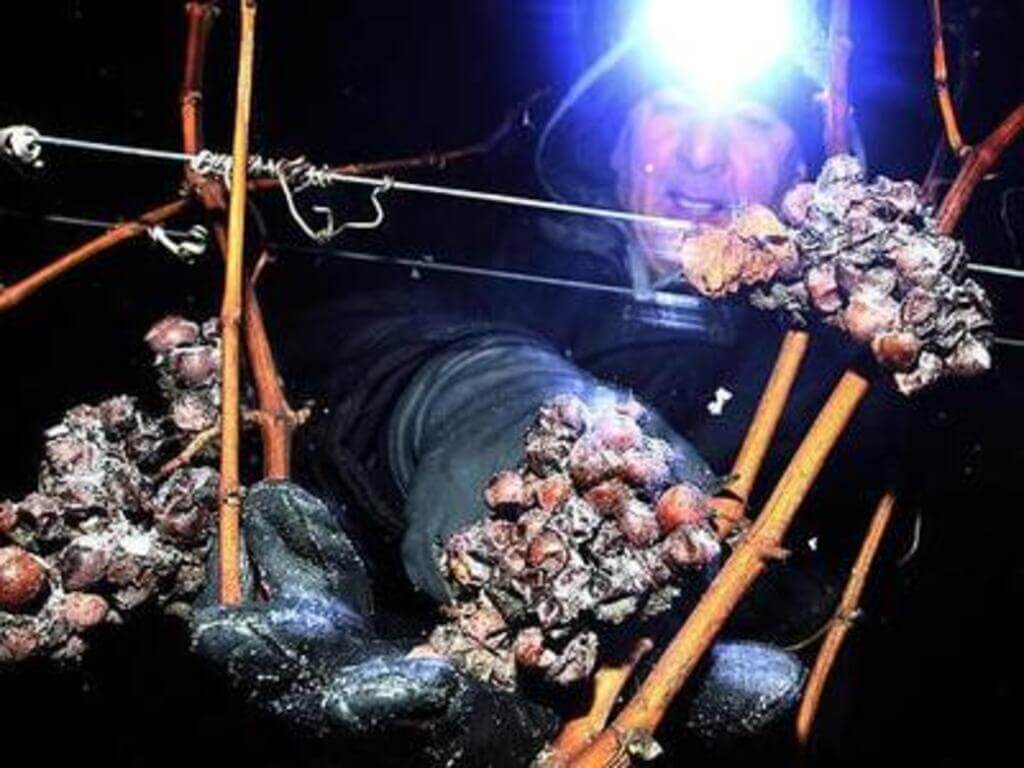 Om deze temperatuur het meest constant te hebben wordt er ’s nacht geoogst. Door het ’s nachts oogsten en het onzekere moment wanneer de juiste tempreratuur wordt bereikt moet je ook nog eens personeel zien te vinden om te willen oogsten voor je, meestal is dat niet het grootste probleem aangezien de saamhorigheid in wijndorpen vaak erg gemoedelijk is.